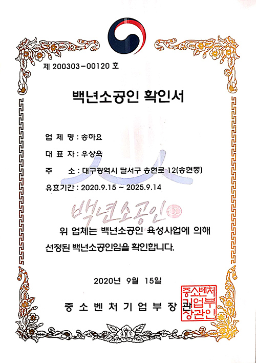 2020 백년소공인 선정(중소벤쳐기업부)